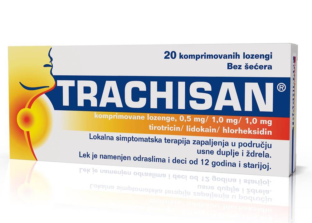 Trachisan je lek za grlo koji u svom sastavu takođe sadrži tirotricin, lokalni antibiotik.