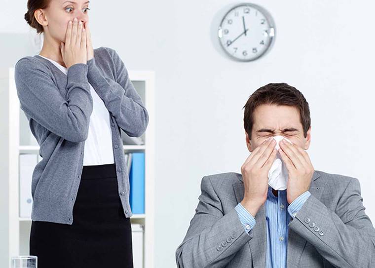 Ovaj virus obično počinje u prednovogodišnje vreme, sredinom jeseni ali i rano proleće. U poslovnom kalendaru prepoznaćete ga po kratkim rokovima, nadolazećim projektima, nezavršenim izveštajima. Ulazi u radni prostor u liku vašeg kolege naoružan maramicama, toplomerom, lekom protiv kašlja i tonom lekovitog bilja kao da otvara ekološki muzej.