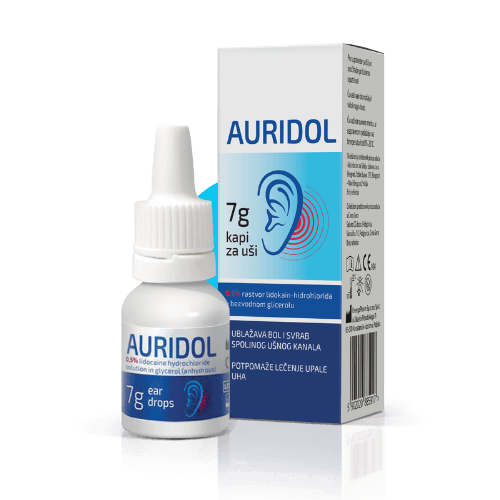 Auridol kapi za uši sadrže i lokalni anestetik lidokain koji potpomaže dejstvo glicerola i umiruje bol u uhu.