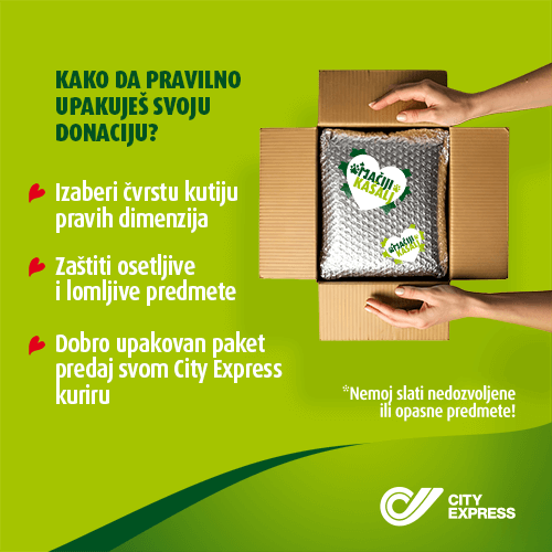 Organizator humanitarne akcije u saradnji sa Kurirskom službom City express obezbeđuje besplatno preuzimanje pošiljki od darodavca i besplatnu dostavu pošiljki primaocu poklona.