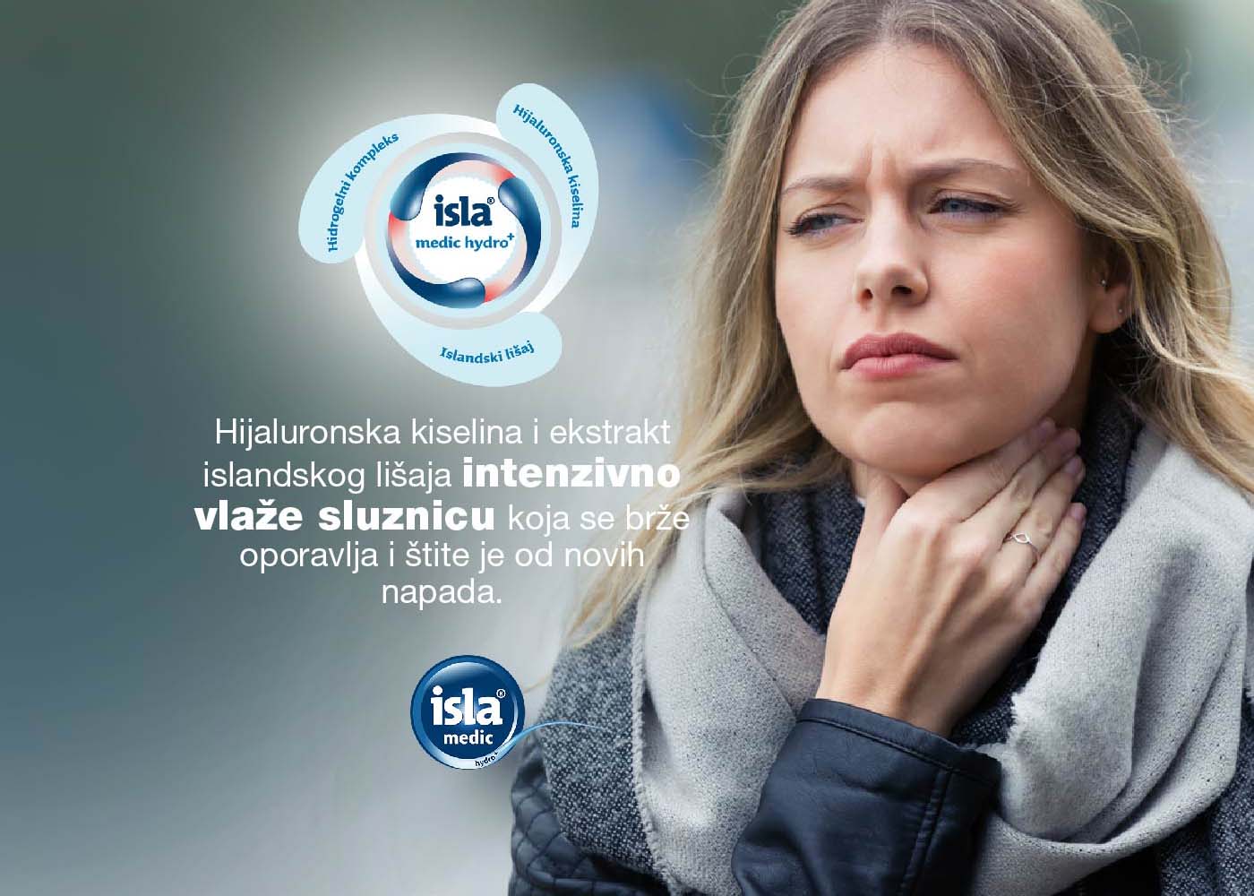 Uz isla® medic hydro+ pastile Vaše grlo će se zaštititi stvaranjem hidrogela koji se zadržava na sluznici i vlažiti jer pastile podstiču stvaranje pljuvačke. Hijaluronska kiselina i ekstrakt islandskog lišaja intenzivno vlaže sluznicu. Na taj se način ona može oporaviti, a istovremeno je zaštićena od daljih oštećenja.