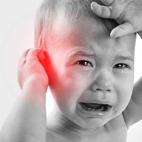 Najčešći oblik upale uha kod beba je upala srednjeg i spoljašnjeg uha. Kako je položaj Eustahijeve tube kod dece položena horizontalno, dolazi do nakupljanja sekreta.