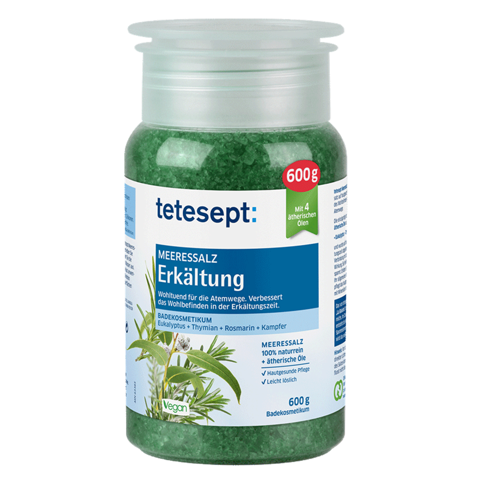 Dodajte ¾ poklopca morske soli tetesept u tekuću vodu za kupanje temperature