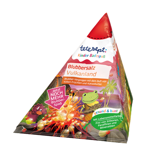 Dečija penušava so za kupanje Svet vulkana sadrži kakao puter sa slatkim voćnim mirisom pogodan za osetljivu dečiju kožu. Specijalna formulacija boji vodu u crveno.